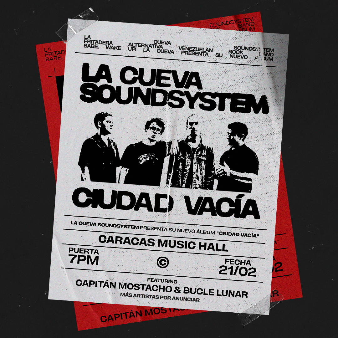 La Cueva Soundsystem abrirá su lista de conciertos de este 2026 presentando el showcase de su más reciente disco ‘Ciudad Vacía’. El próximo sábado 21 de febrero el Caracas Music Hall será el escenario de un gran espectáculo en donde la banda caraqueña presentará todos los temas de su último proyecto incluyendo otras de su repertorio.