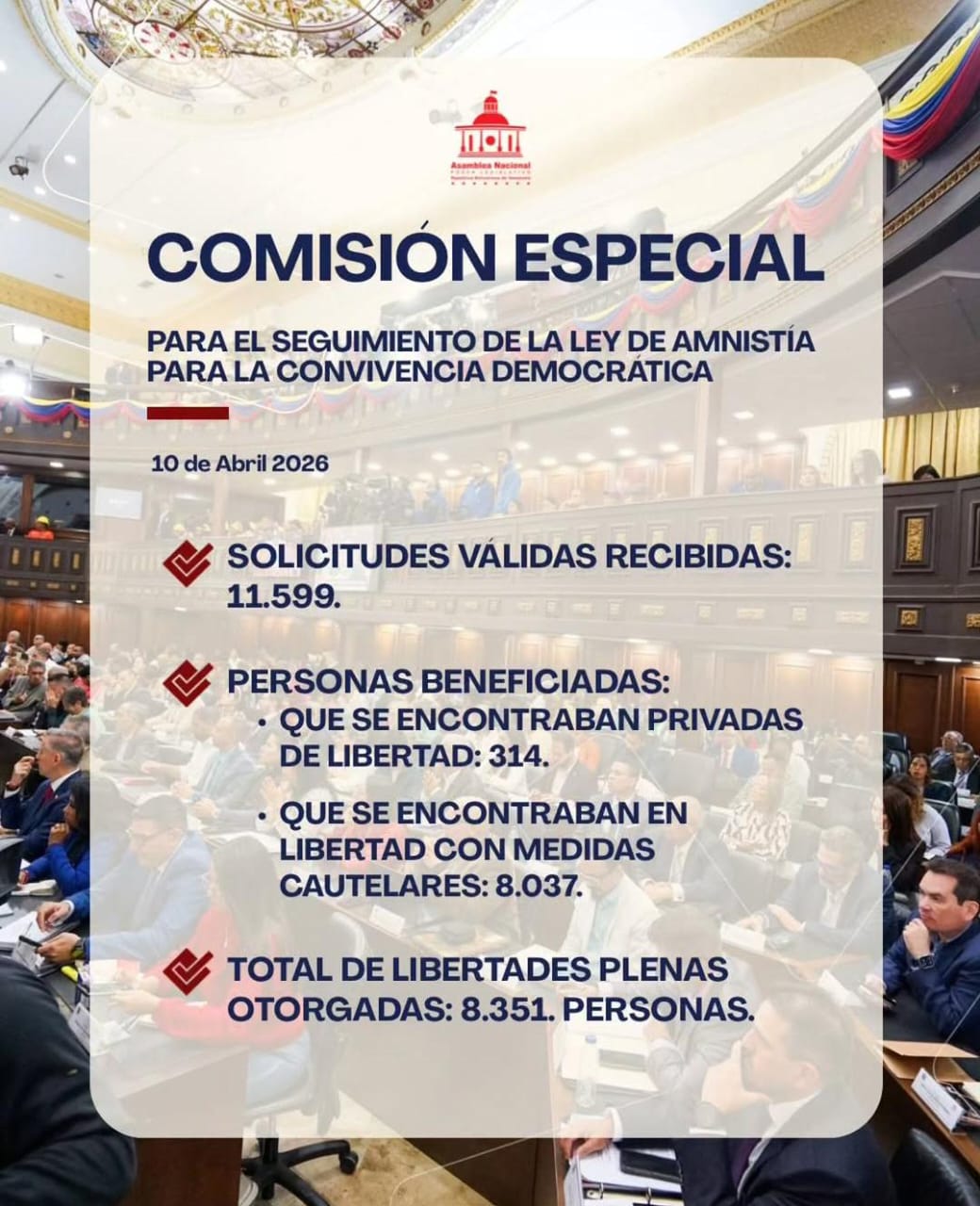 La Comisión Especial para el Seguimiento de la Ley de Amnistía ofreció un reporte oficial donde asegura que este instrumento legal ha beneficiado a más de 11.599 personas en menos de dos meses desde su implementación.